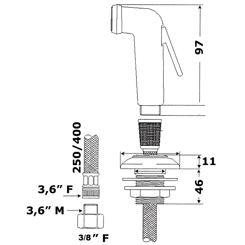 - Pommeau de douche : levier marche / arrêt, raccord ½’’ femelle