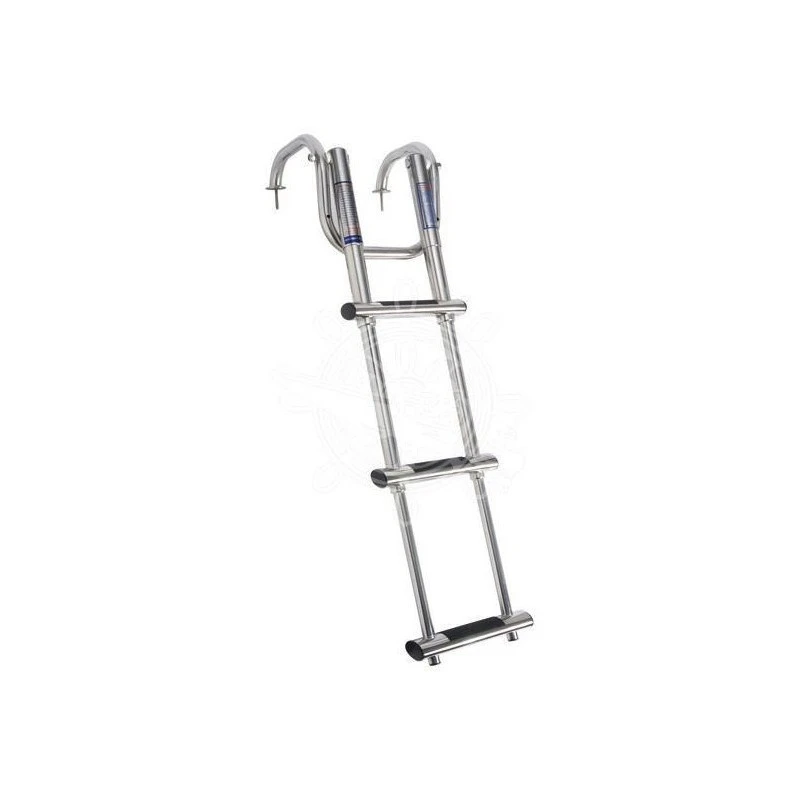 Fabrication en inox qualité marine AISI 316 OSCULATI propose une échelle de plate-forme ultra-compact avec trois marches télescopiques.