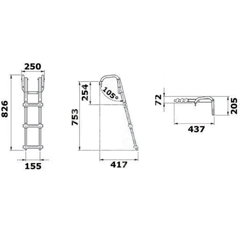 Caractéristiques techniques de l’échelle de plate-forme compacte par OSCULATI :