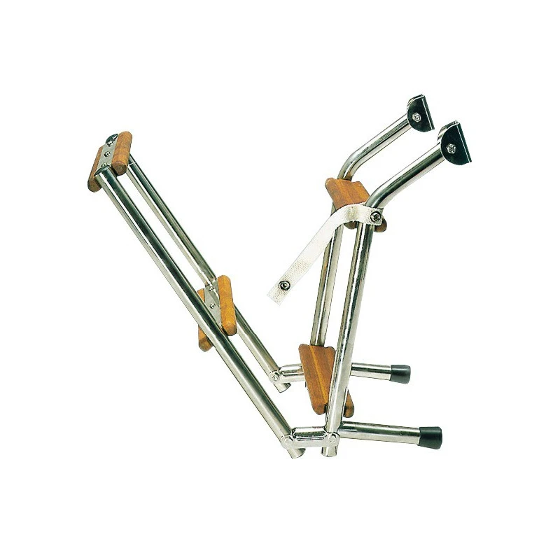 Echelle de bain pour bateau avec armature en inox et marches en bois Iroko, 3 modèles disponibles : 3, 4 ou 5 marches.