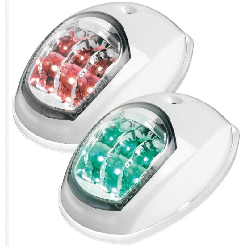 HomologuĂ©s pour bateaux jusqu’Ă 12 m, ces feux de navigation 12V Ă LED , Ă©quipement pour bateau de trĂ©s faible encombrement se montent trĂ©s facilement sur tout type de bateau, voilier ou vedette pour une meilleure visibilitĂ© de nuit et conformĂ©ment aux normes : COLREG ’72, RINA, NMMA, USA. Vendu par paire Babord Tribord.