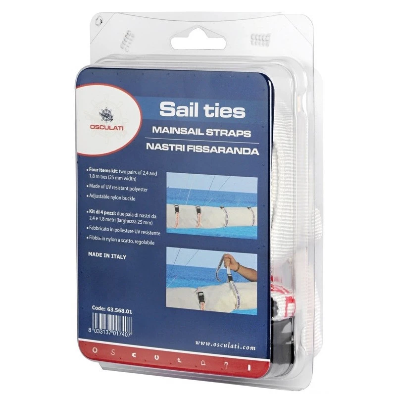 le Tie Down de OSCULATI est un kit de ferlage ou ferlette pour les voiles de bateau composé de 4 sangles a clips rapide pour une mise en place rapide.
