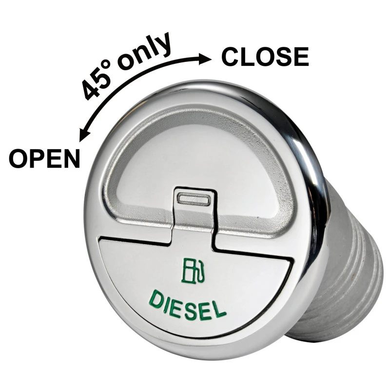 Bouchon de remplissage à clé avec levier et serrure parfaitement intégré et ouverture quart de tour type bouchon de réservoir automobile, très pratique et très esthétique cette coupelle de remplissage inox pour réservoir s’accordera parfaitement avec le pont de votre bateau ou la carrosserie de votre fourgon aménagé.