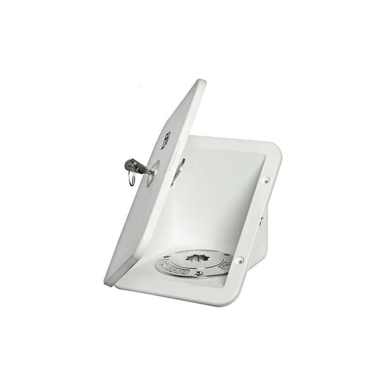 Equipement de pont bateau ou carrosserie véhicule aménagé et camping-car, niche à encastrer avec couvercle pour remplissage du gasoil ou essence, serrure en option.