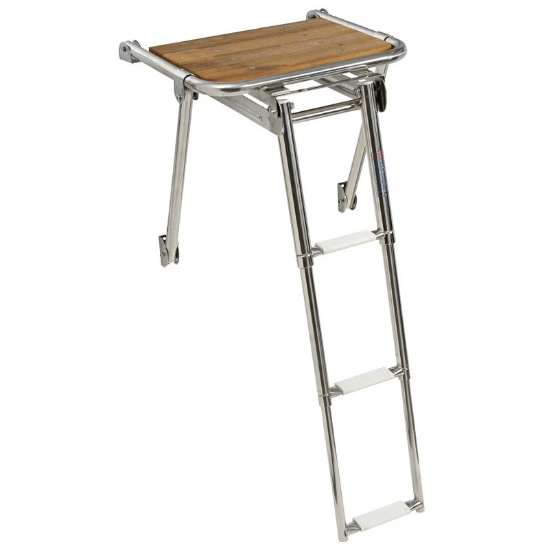 Facile à poser sur tout tableau arrière de bateau, cette plateforme teck est adaptée pour recevoir une échelle éscamotable 3 marches fixation sous plateforme. Equipement de qualité, vous apprecierez l’accès facile à votre bateau en baignade tout comme en cas de remontée à bord rapide.