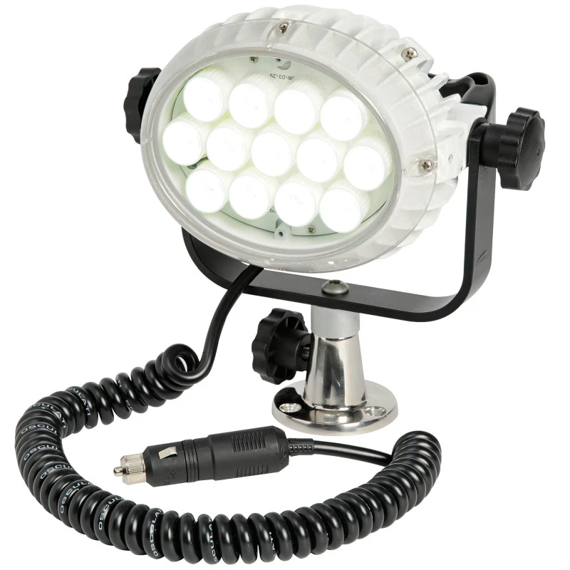 Idéal pour les voiliers comme pour les bateaux moteur, le projecteur de pont est un accessoire de sécurité non négligeable, le OSCULATI Night eye LED est étanche IP66 et fonctionne grâce à une prise 12V type allume-cigare (fourni) qui peut-être connecter à extérieur. A la fois léger et robuste et léger grâce à son corps ABS résistant à la corrosion de l’environnement marin et traité anti-UV.