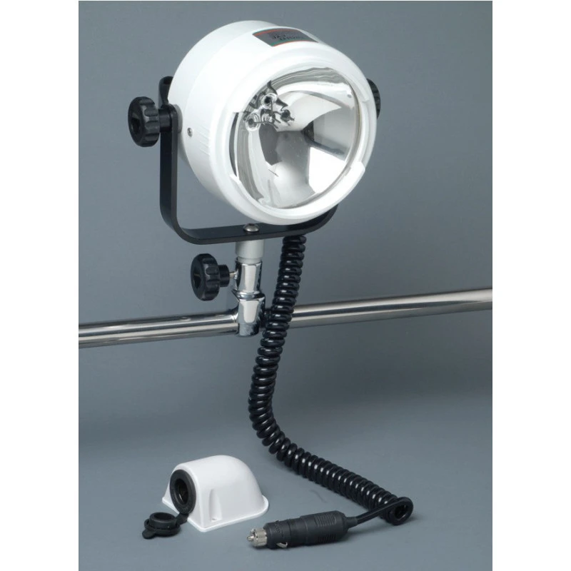 Projecteur de pont 12 / 24 V pour bateau puissant (portée 400 m) à fixer sur plat pont ou balcon avec alimentation par prise allume-cigare.
