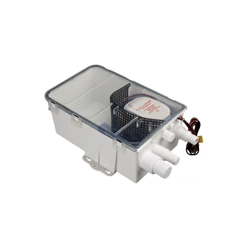 Cet accessoire permet de centraliser la collecte des eaux grises et usées à l’intérieur des bateaux, le réservoir tampon permet à la pompe de se déclencher automatiquement. D’une tension de 12V ou 24V , la pompe EUROPUMP présente peut relever les eaux jusqu’à une hauteur de 3 m. Le bac de récupération comporte un couvercle pour facilité l’inspection et le nettoyage du filtre (fourni).