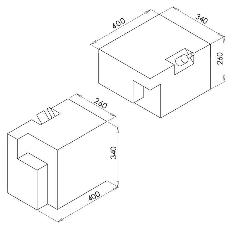 - Dimensions position n° 2 : Largeur 400 x Profondeur 340 x hauteur 260 mm