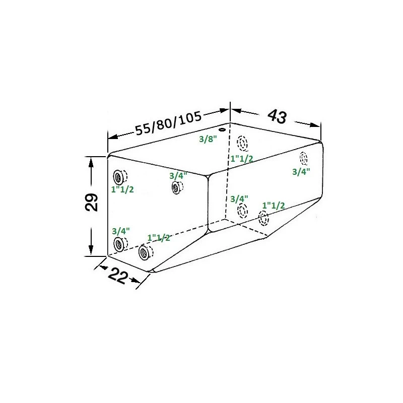 Capacités disponibles et dimensions hors-tous des cuves à eaux noires OSCULATI pour fond de coque :