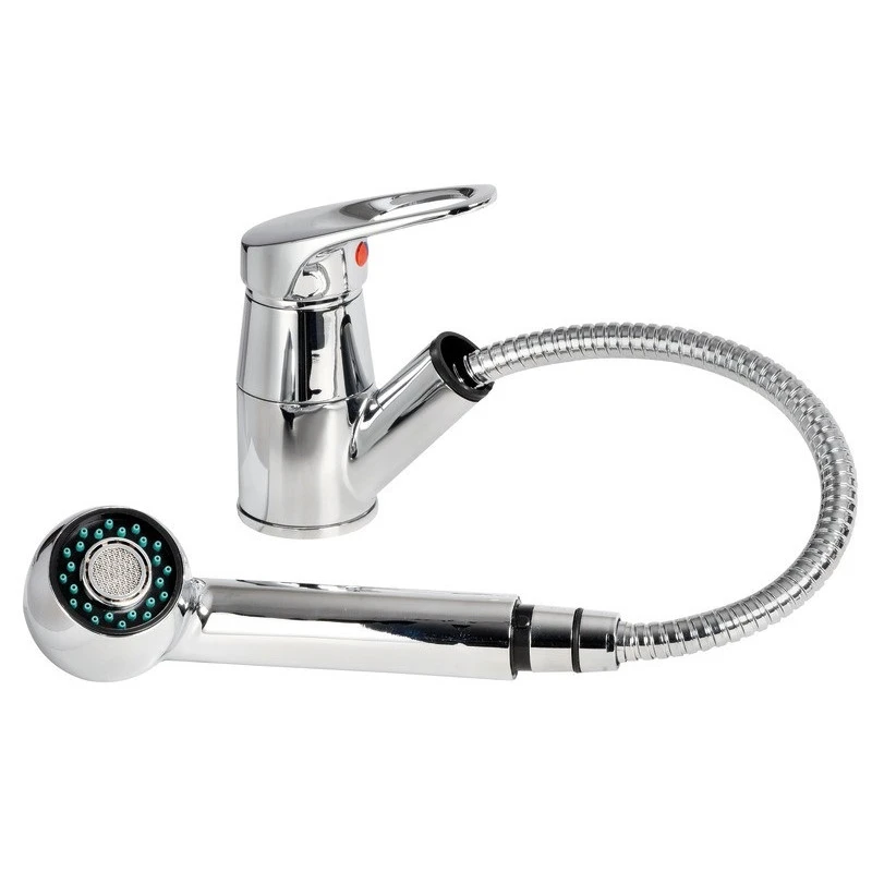 Robinet mitigeur avec disque céramique et bec pivotant 360° + douchette, idéale pour les petits espaces comme la cuisine ou la salle de bain du bateau & camping car.