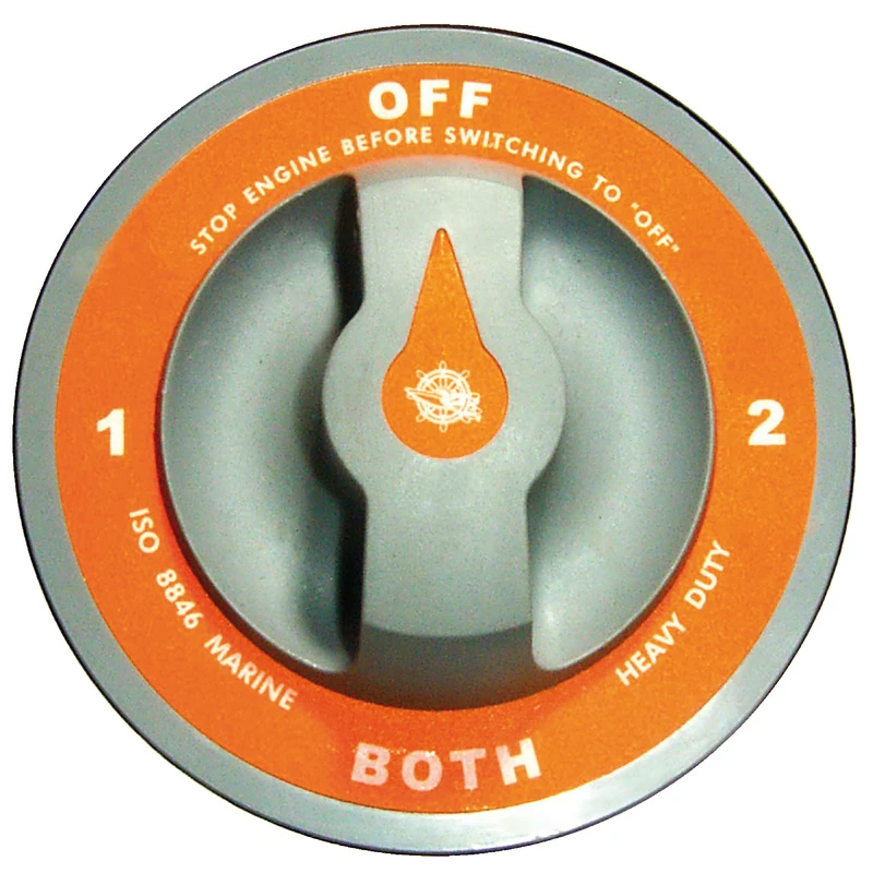 Cet équipement électrique est très pratique pour isoler ou coupler vos batteries. Cet appareil homologué ISO8846 résiste aux flammes. Vous avez plusieurs possibilités de paramétrer le commutateur : Sur la position 1, vous reliez en même temps les batteries de démarrage moteur et les batteries de service, tout en maintenant les batteries de démarrage séparées afin de minimiser les risques de décharge accidentelle des batteries en cas d’urgence. Sur la position “2”, les deux circuits sont reliés entre eux (en parallèle).