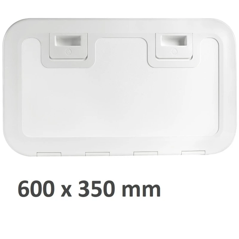 Conçue pour résister au UV la trappe d’accès OSCULATI est fabriquée en Luran (plastique résistant à base de résine), pour plus de sécurité la façade recouvre complètement les vis de fixations. En option, OSCULATI propose des filets à installer derrière la porte (voir ici).