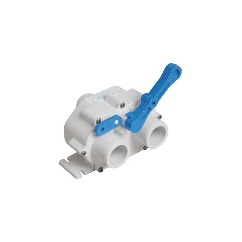OSCULATI équipement en plomberie intérieur du bateau propose ici une robuste vanne trois voies fabriqué en ABS pour la connexion des tuyaux diamètre 38 mm des toilettes et WC marin, vanne activer par levier manuelle.