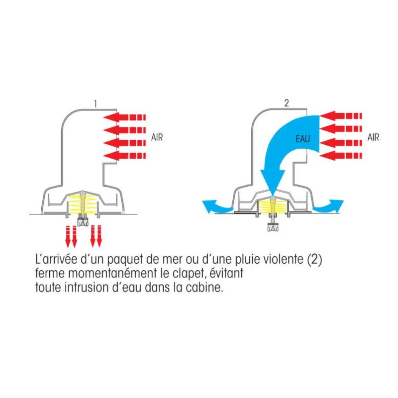 Cet équipement extérieur est très simple d’utilisation pour votre voilier, la bonne aération de votre bateau est indispensable pour votre confort et également sur la longévité de vos équipements (coussins, gilets, …). L’humidité créée de la moisissure et la seule solution pour éviter ce phénomène, c’est une bonne aération à l’intérieur de votre bateau.