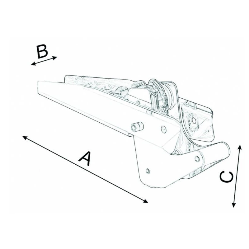 | Longueur A (mm) | Largeur B (mm) | Hauteur H (mm) | Poids max ancre charrue (kg) | Poids max ancre plate (kg) | Poids davier (kg) |