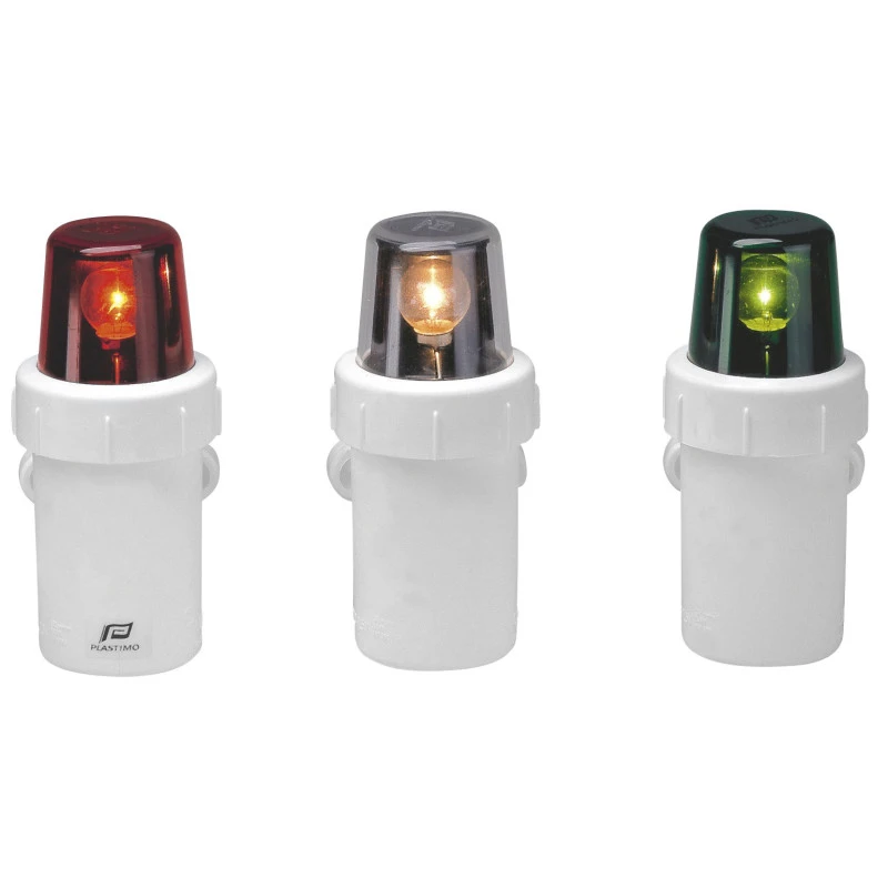 Jeu de trois feux de navigation de secours PLASTIMO, autome alimentés par piles indispensable à bord des bateaux de toute taille.