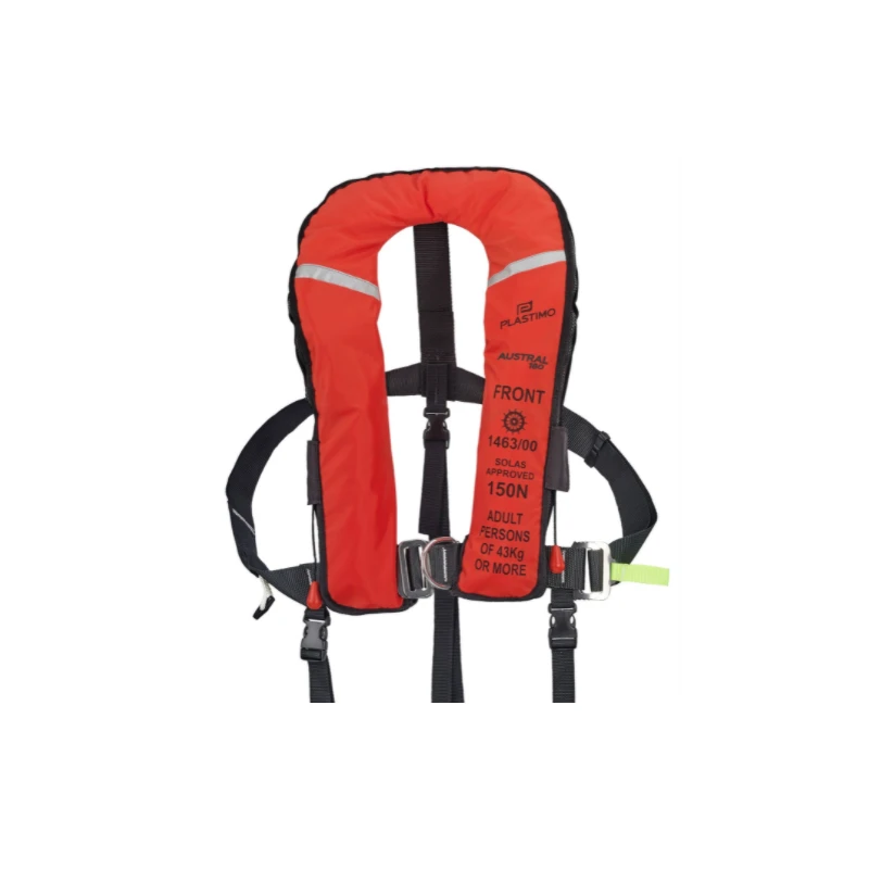 Afin d’exercer leur activité en toute sécurité, PLASTIMO propose le gilet Austral 180 aux professionnels. L’élément de sécurité est indispensable pour une utilisation professionnelle : navire de commerce, navire de pêche, plateforme éolienne, pétrolière ou offshore. Offrant un niveau de technicité optimal & certifié SOLAS, l’élément de sécurité comporte une vessie à double chambre : 2 systèmes de percussion, 2 valves de surpression & 2 embouts pour gonflage buccal.