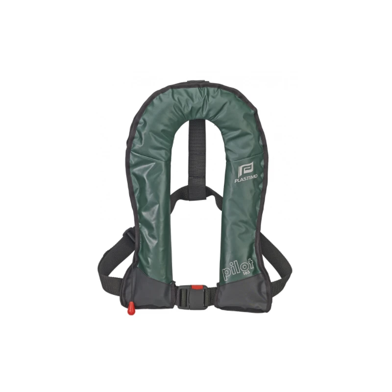 Recommandé pour la pêche en mer, en rivière ou en lac, à pied ou en bateau comme pour les professionnels de la pisciculture, le gilet Pilot vert de PLASTIMO est un gilet automatique avec un mécanisme de déclanchement à cellulose UML5. Sous immersion totale, la pastille fond au contact de l’eau & percute la cartouche actionnant le gonflage immédiat du gilet.