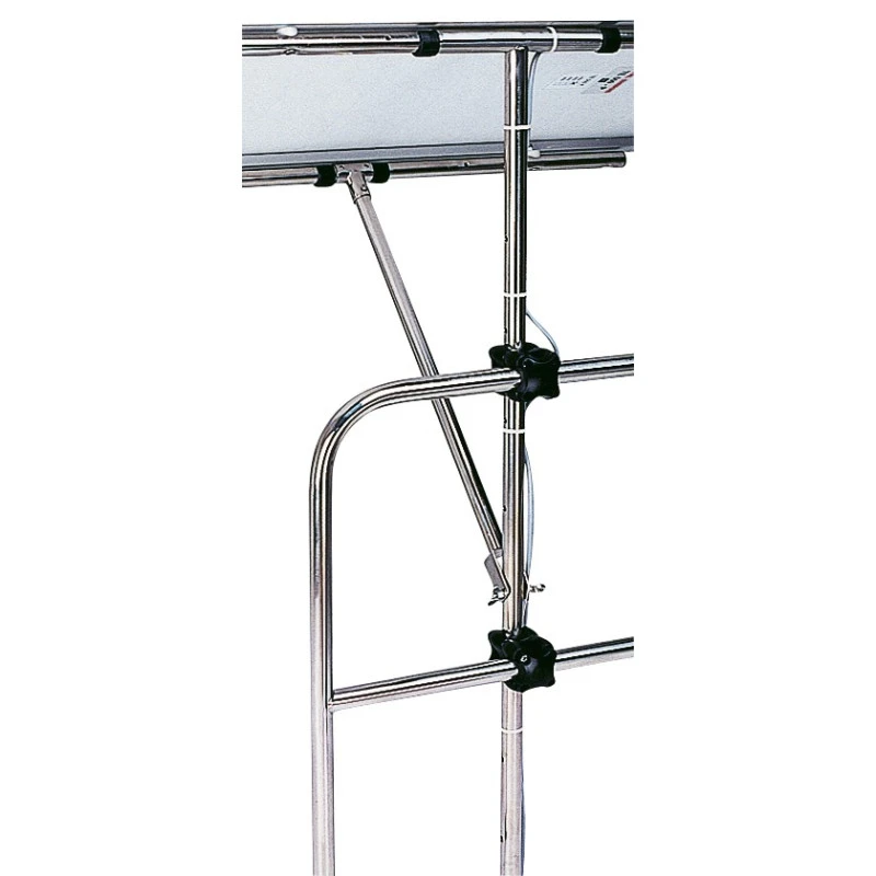 Equipement PLASTIMO en inox 316, ce support pour panneau solaire orientable se fixe directement sur le balcon du bateau.