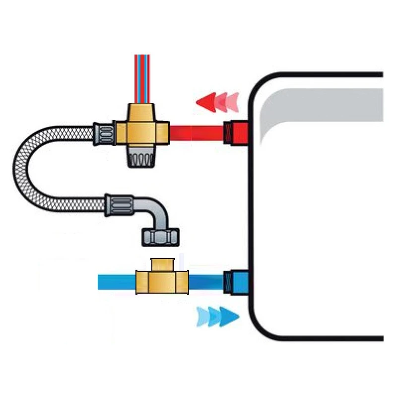 A installer en sortie de chauffe eau, le pré mitigeur permet de pré mélanger l’eau chaude en sortie de chauffe-eau.