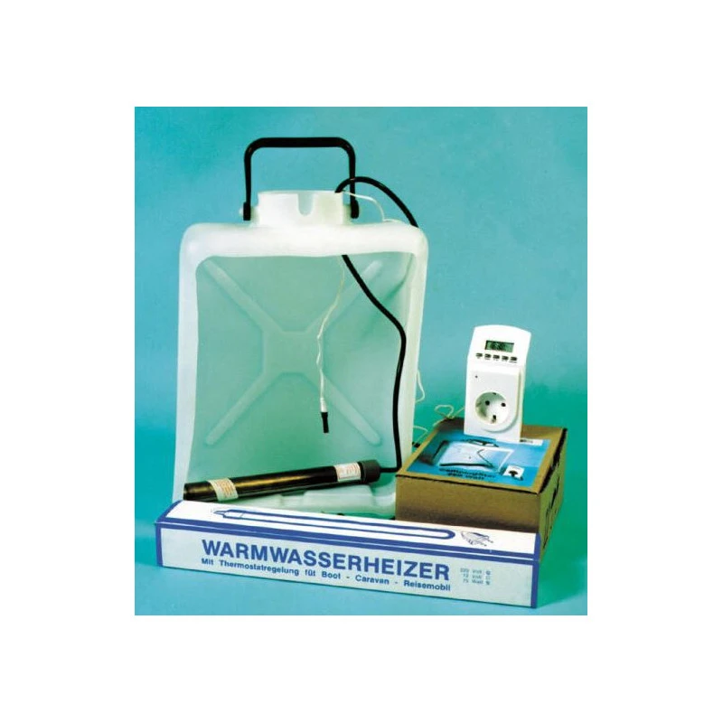 Ce chauffe-eau MADE IN ALLEMAGNE permet de chauffer l’eau directement dans le jerrican à une température de 40°C maximum, accessoire idéal en bateau comme en fourgon aménagé.
