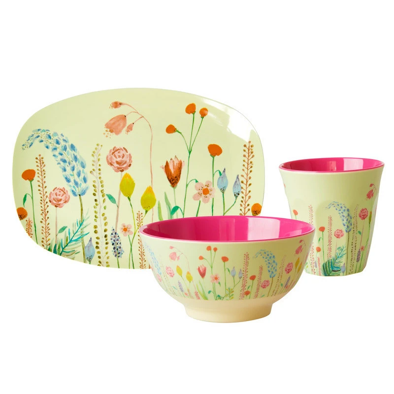 Composé également d’un mug et d’un bol, il convient aussi bien aux petits comme aux grands. Ses motifs floraux apporteront une touche printanière à vos tables, disponible en bleu ou en rose, ce set vaisselle passe au lave-vaisselle et pourra être emporté avec vous pendant vos voyages en bateau, fourgon ou camping-car mais aussi en camping.