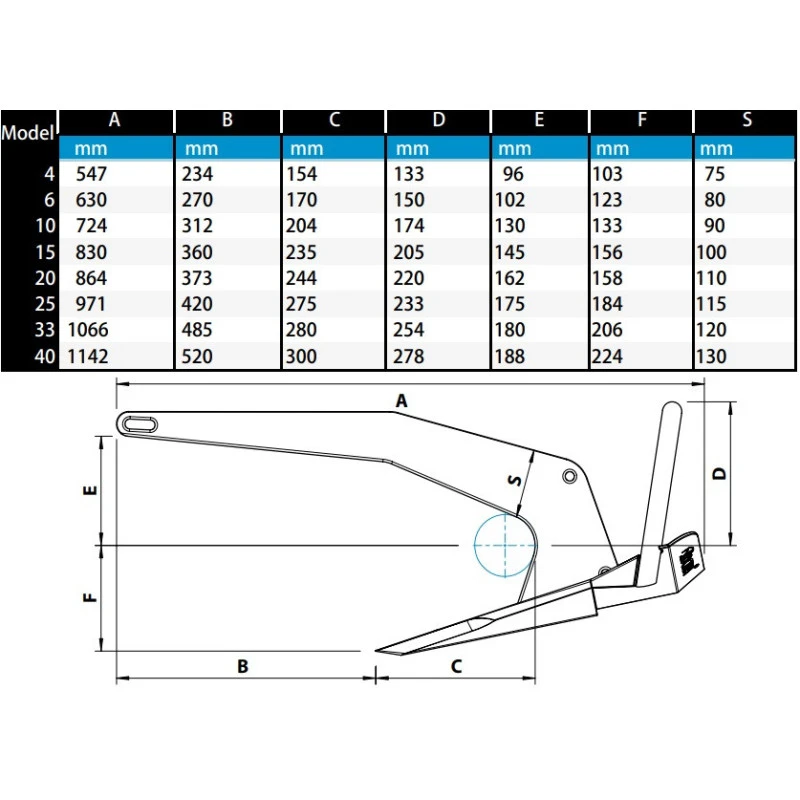 Point fort des ancres ROCNA Original pour bateau de 4 à 35 mètres :