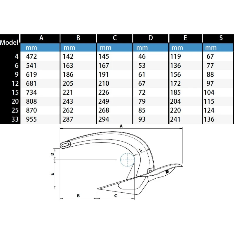 Compatible pour tout type de bateau cette ancre est disponible de 4 à 250 Kg pour le voilier et le bateau moteur.