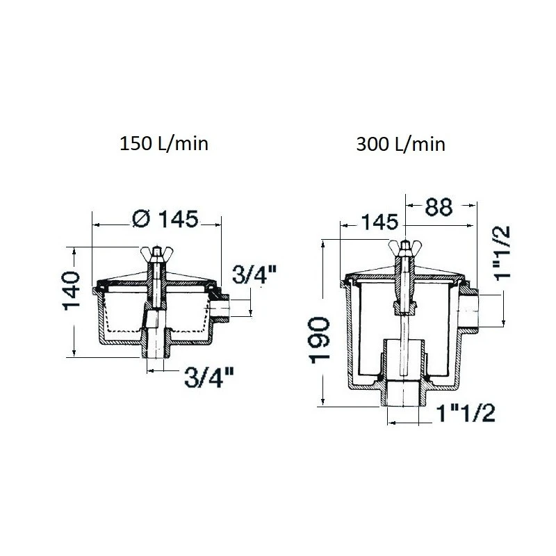 Disponible en débit 150 L/min ou 300 L/min selon le débit pompe moteur ou la charge du plan d’eau.