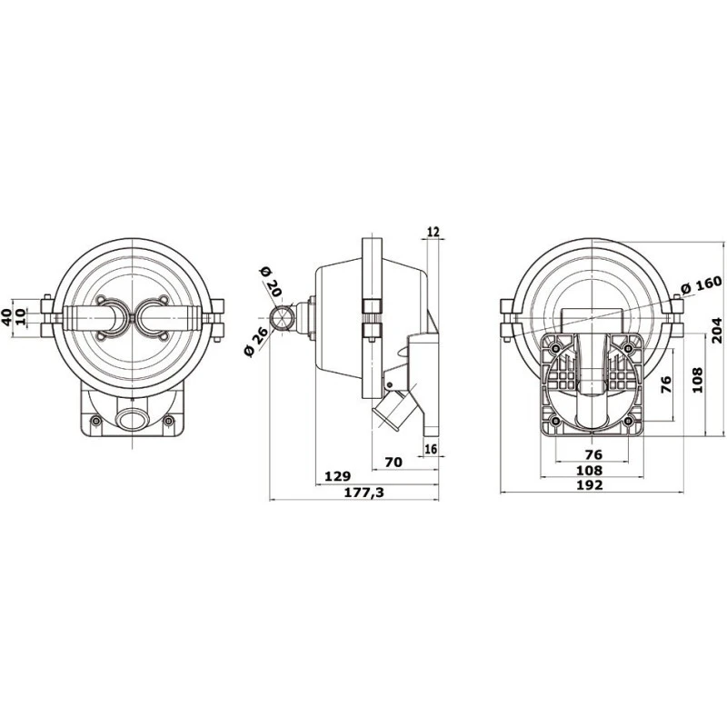 Avec sa trappe d’accès et son levier amovilbe, cette pompe s’installe à ras d’une paroi de coffre dans le cockpit du bateau. Les sorties de tuyaux étant orientables, l’installation reste simple et la fixation se fait à l’aide de 4 vis seulement.