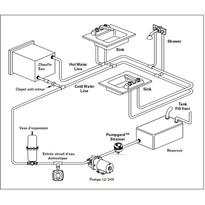 – Lors de la conception de votre circuit d’eau à bord de votre bateau ou camping-car, nous vous conseillons l’installation d’un vase d’expansion : voir ici