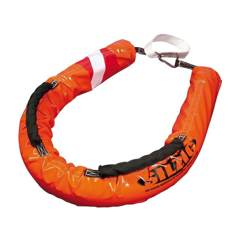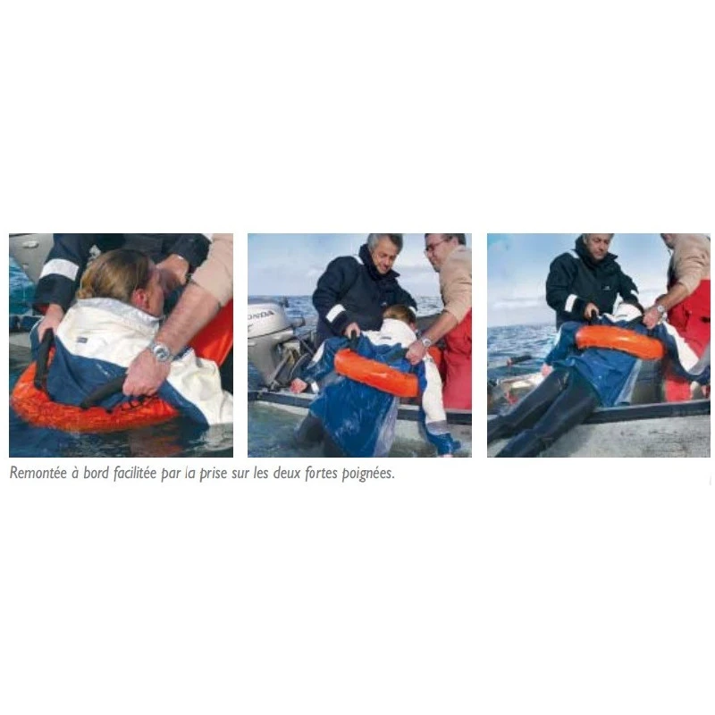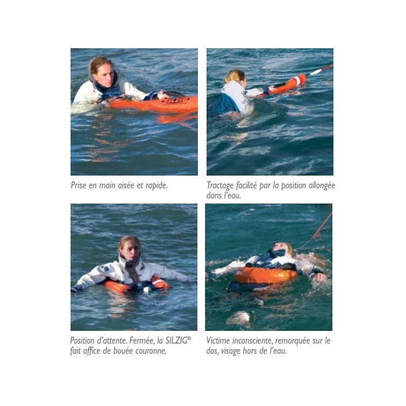 Homologuée en France pour remplacer une bouée fer à cheval, le bouée SILZIG a fait ses preuves quant à son efficacité pour récupérer les hommes à la mer. Il s’agit d’un produit « trois-en-un » : bouée de sauvetage, tractage derrière le bateau et récupération. Sa forme si particulière lui permet de s’adapter à la morphologie de chacun contrairement à une bouée fer à cheval : trop grande pour les enfants, trop petite pour les personnes à corpulence prononcé ou dotée d’une veste de quart plus gilet de sauvetage…