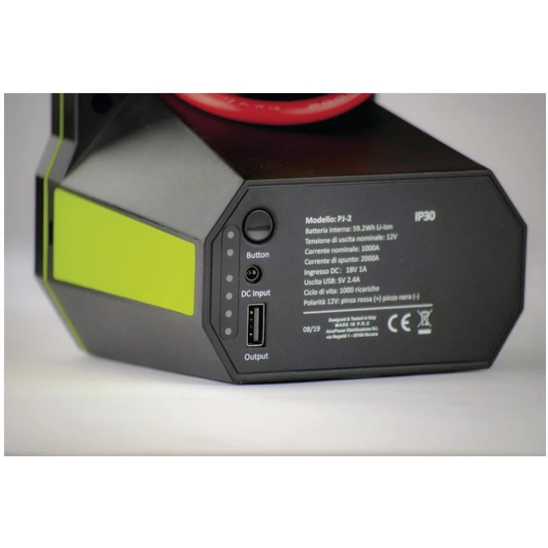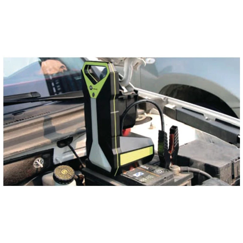 Tout cela est rendu possible grâce à une batterie lithium LiFePo4 spécialement dédiée à cette utilisation, il convient pour un démarrage moteur avec batterie 12 V. En outre, le Jump Starter a de multiples fonctionnalités : d’abord un éclairage LED en cas de panne la nuit, si la LED s’allume rouge c’est qu’il y a un problème (inversion de polarité par exemple).