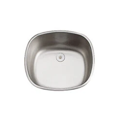 Evier avec grande cuve profonde en inox livré avec bonde pour l’équipement des cuisines de bateaux, camping-cars et fourgons aménagés.