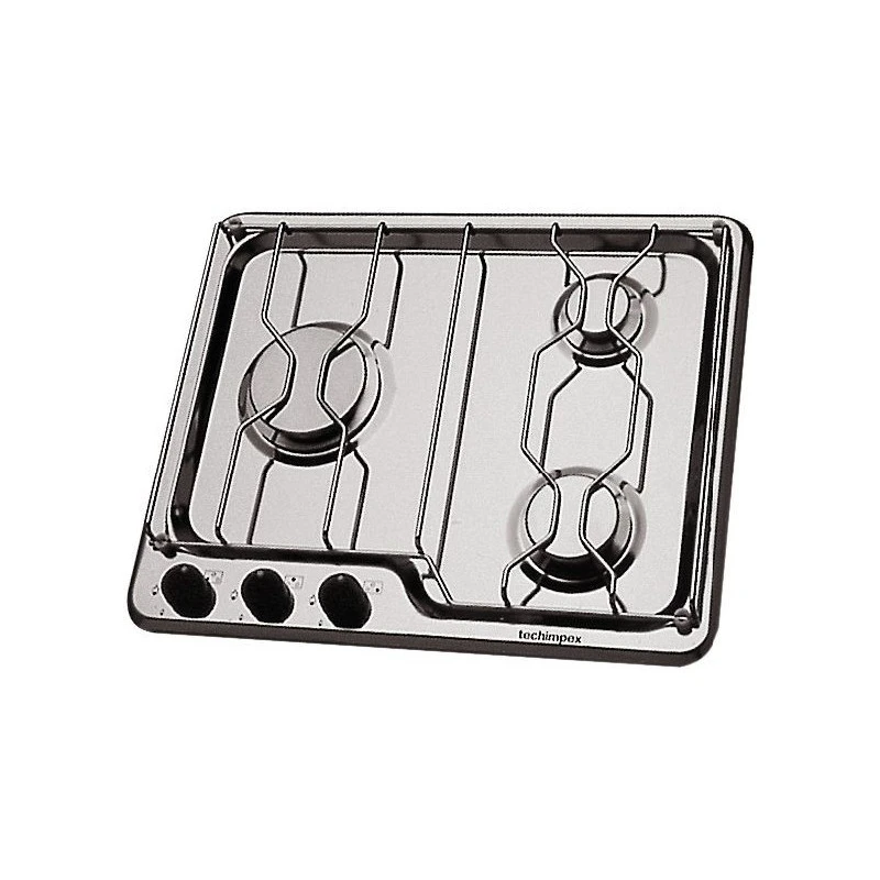 TECHIMPEX Plaque de cuisson 3 feux gaz encastrée tout inox pour installation sur le bateau, camping-car et fourgon aménagé.