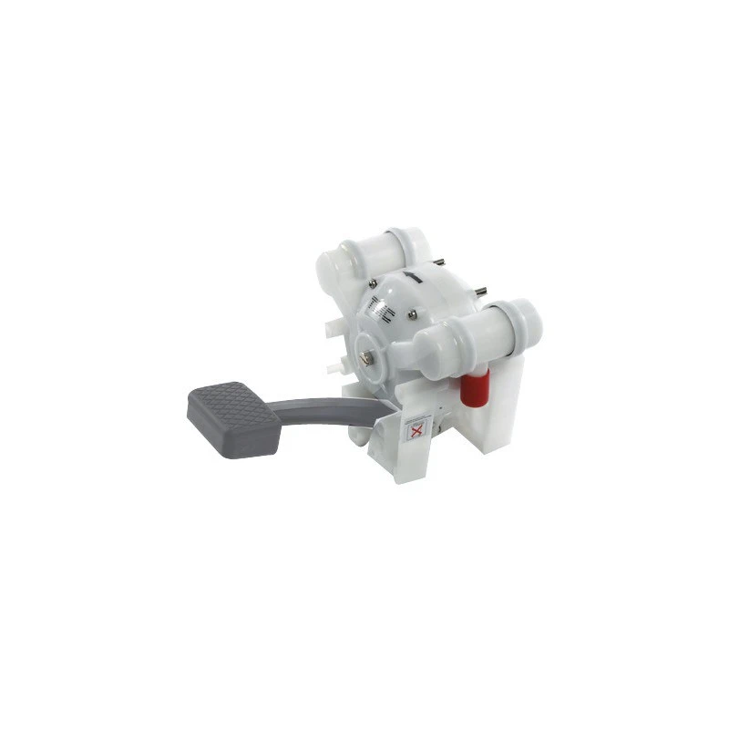 Cette pompe à pied double effet est simple à installer et s’intègre parfaitement dans le meuble de cuisine du bateau ou fourgon aménagé, seul la pédale dépasse.