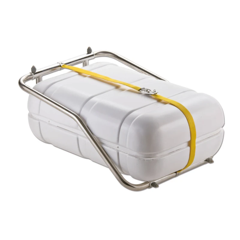 Le support pour radeau de survie TREM est entièrement fabriqué en INOX 316. Ce support universel est capable de s’adapter à tout radeau de survie allant jusqu’à 12 personnes. Il trouvera sa place sur votre voilier ou votre vedette en montage à plat pont, sur balcon ou sur tableau arrière. Les sangles en polyester sont réglables et assurent un maintien solide du radeau dans toutes les conditions.