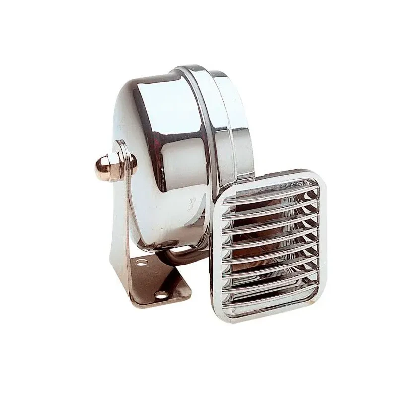Alimenté en 12V ou en 24V sur le réseau électrique du navire, l’équipement pour bateau dispose d’un son & d’une tonalité forte pour signaler votre présence auprès des autres navires. Cet avertisseur, fabriqué en ABS chromé, est doté d’un étrier de fixation en acier inoxydable. Elégant & résistant aux UV ainsi qu’à l’environnement marin, la corne de brume compact & légère délivre une puissance de 115 décibels sur une longueur de 2 mètres.