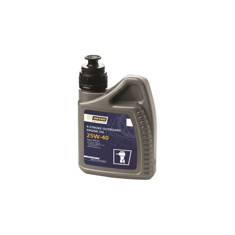 Huile haut de gamme pour moteur hors-bord 4 temps utiliser sur bateau, huile VETUS VFS 25W-40 assure la lubrification haute performance pour les moteurs hors-bord des plus grand constructeur en respectant leurs préconisation NMMA FC-W comme MERCURY, YAMAHA, HONDA, SUZUKI.
