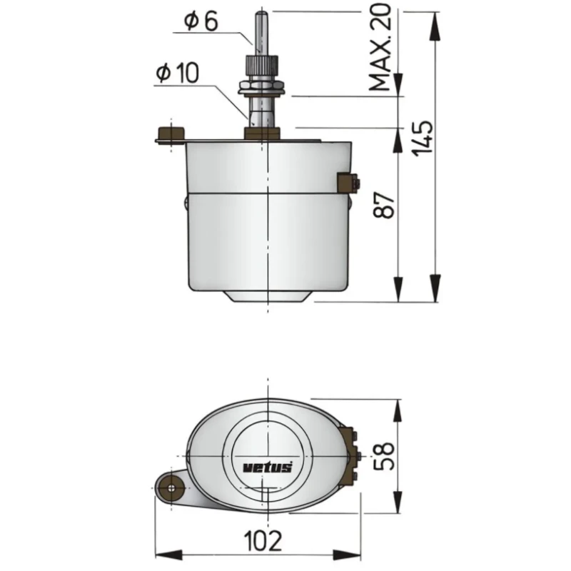 Caractéristiques techniques du kit essuie-glace 12 V complet de VETUS :