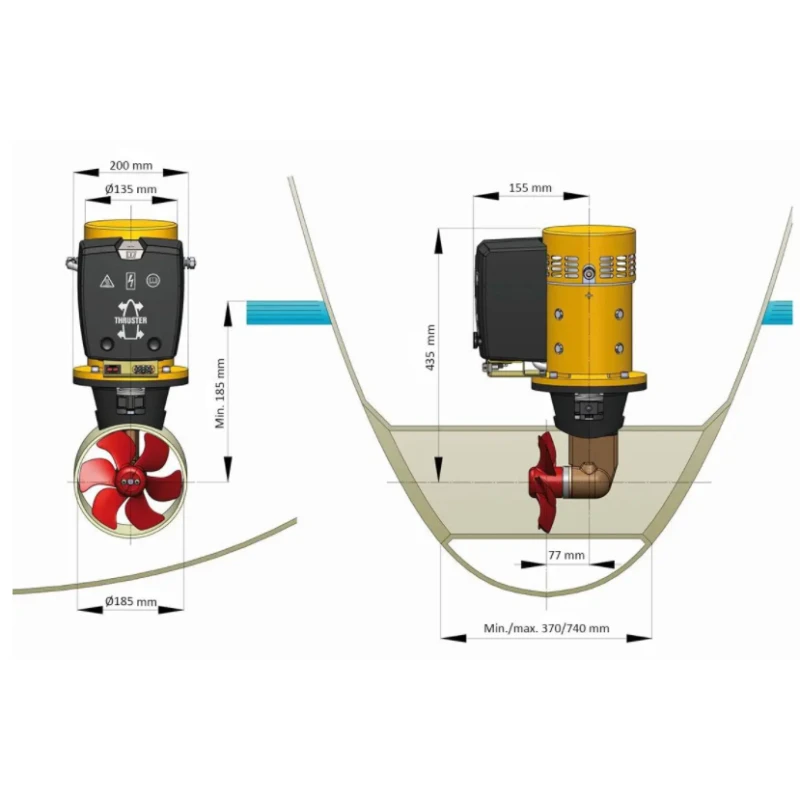 Caractéristiques techniques du kit propulseur d’étrave bateau de moins de 8-14mm VETUS :