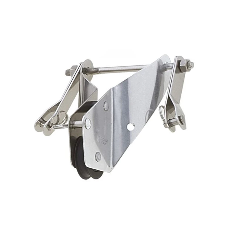 Fabriqué en inox, la ferrure de capelage VIADANA, s’installe sur mât de dériveur ou petit croiseur diamètre 55 à 65 mm. fourni avec son axe traversant ø 6 mm cette ferrure de mât permet également la fixation des haubans, un axe est également prévu pour le montage de l’étai et la poulie de revoie alu permet le passage de la drisse de voile d’avant (foc ou inter).