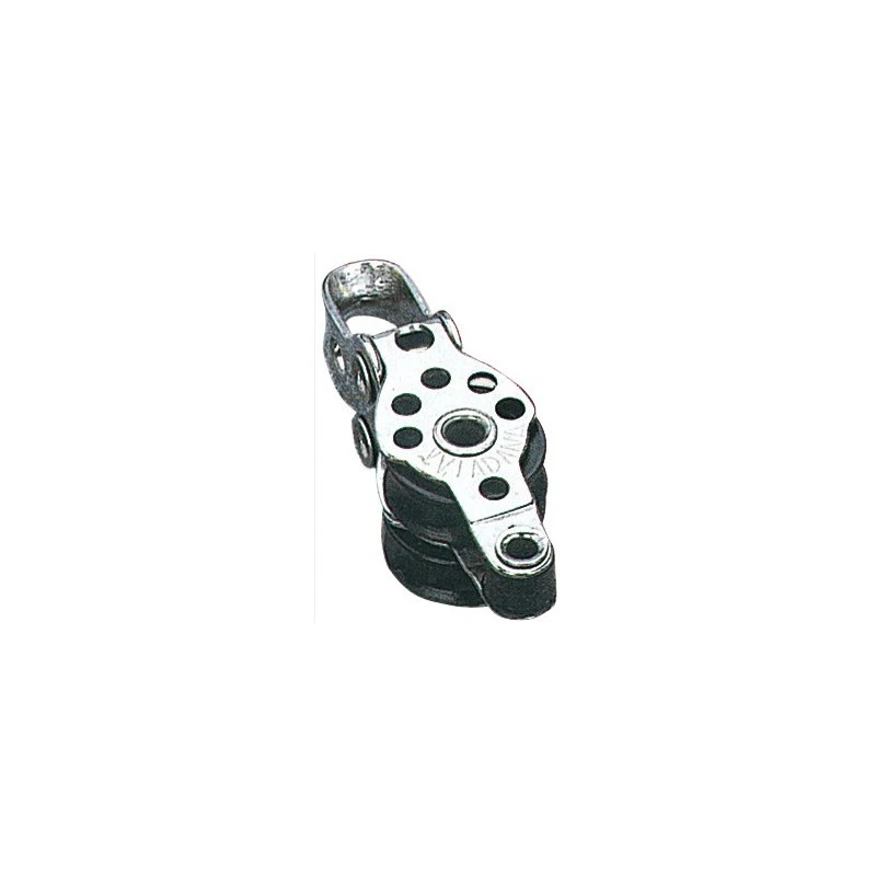 VIADANA Poulie double + ringot ø 17 est une petite poulie accesptant une forte charge de travail pour dériveur et palan de voilier.