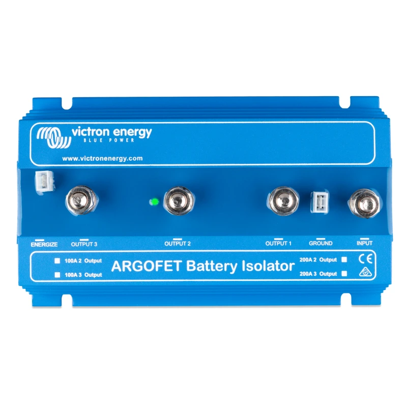 Le VICTRON Argo FET dispose d’une entrée pour l’alternateur du bateau, & 2 sorties permettant de distribuer le courant de charge entre 2 parc a batterie. En démarrant le moteur Inboard, vous pourrez alors charger 3 parc a batteries marines de manières totalement indépendant, comme par exemple la batterie moteur, de service & de propulseur d’étrave !