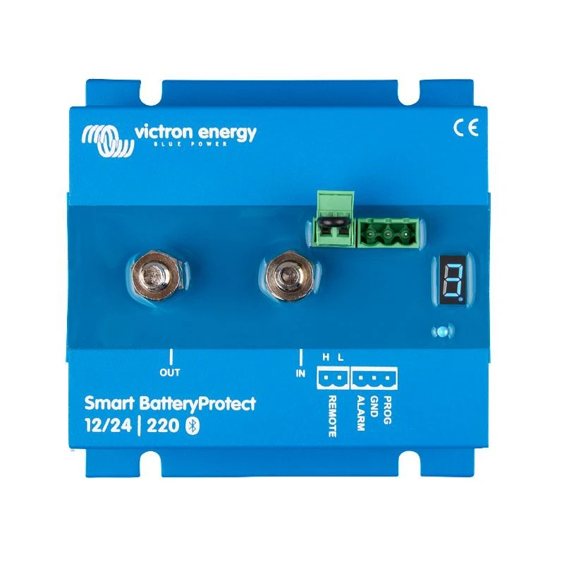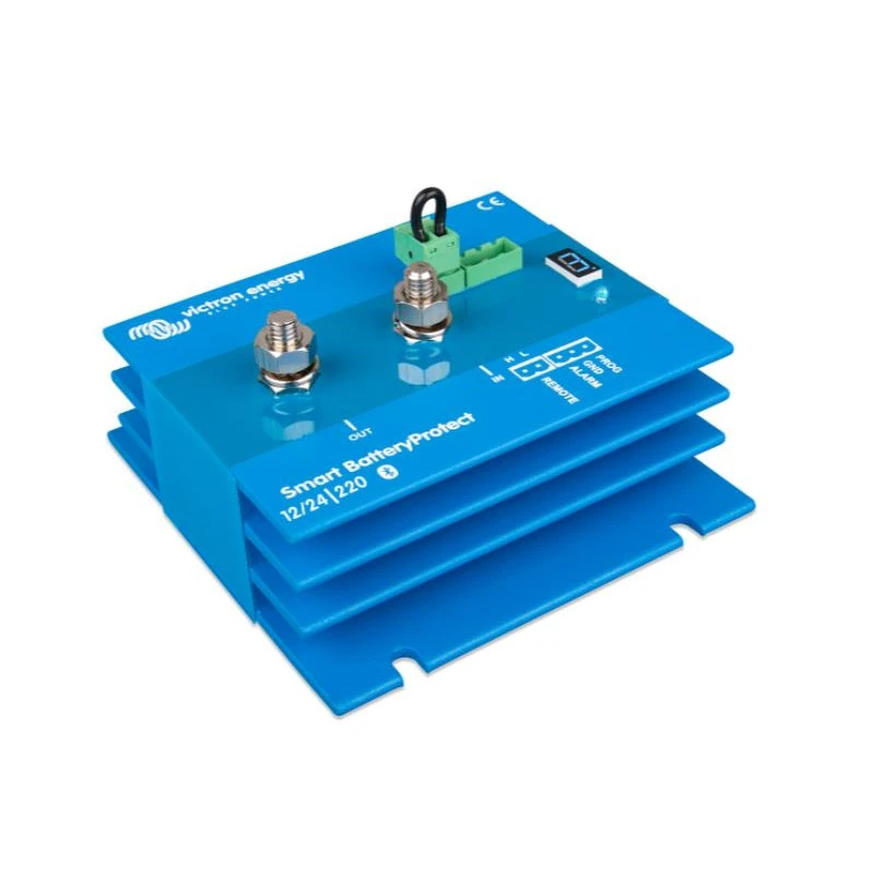 VICTRON apporte une solution technique a cette problĂ©matique de gestion d’Ă©nergie, avec le Smart Battery Protect 220 A. Une vĂ©ritable protection basse tension qui permettra de dĂ©connecter le parc en batterie en cas de tension trop basse. Ainsi vous pourrez prĂ©servez vos batteries AGM & GEL, & Ă©viter la dĂ©connexion du BMS sur les batterie Lithium.