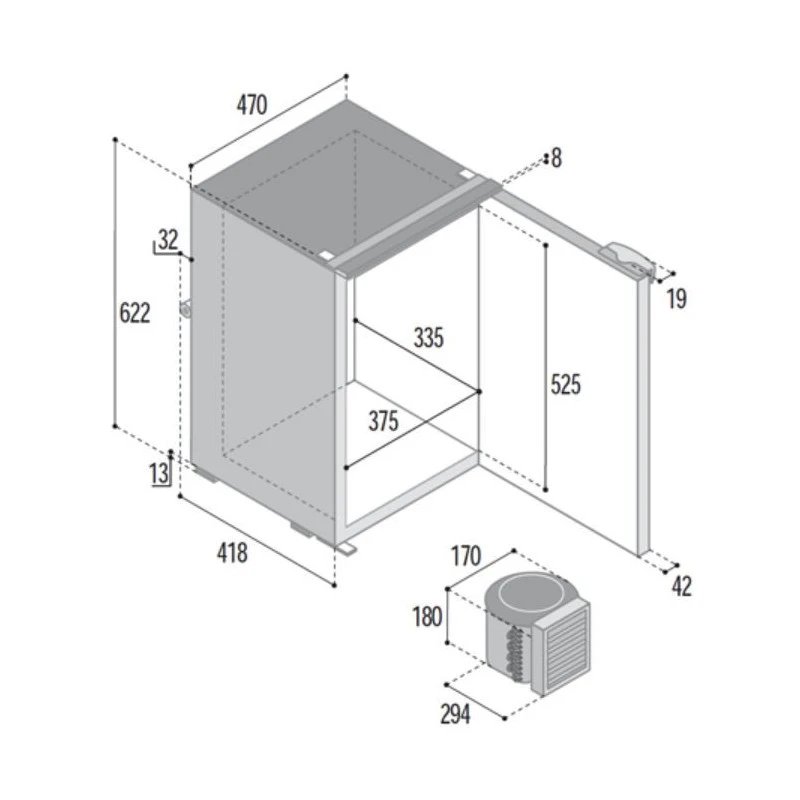 Frigo 12/24V à compression capacité 75 L façade grise, le C75L de VITFRIGO est spécialement dédié au camping-car, fourgon aménagé et bateau. Groupe froid déporté et façade grise.