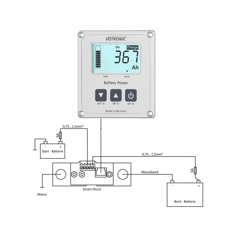 Contrôleur de batterie 12V VOTRONIC : cet équipement permet de connaître à l’ampère près l’état de charges de vos batteries du bateau ou camping-car sur un écran LCD..