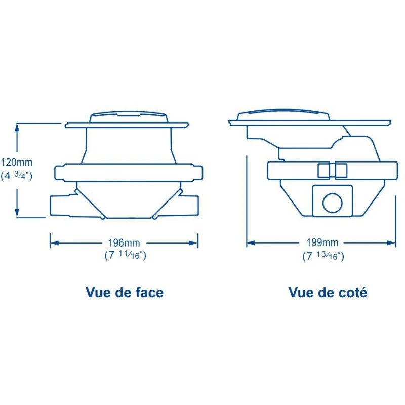 D’une capacité max de 40 L/min, cette pompe de cale est indiquée pour les moyennes unités comme pompe de secours. Très robuste, la pompe WHALE Compac 50 s’installe facilement par encastrement sur paroi à l’aide de 4 vis de fixation. Conçu pour durer, cet accessoire de sécurité en bateau possède un corps de pompe en polypropylène renforcée en fibre de verre. Sa profondeur de 120 mm seulement vous permet de l’installation dans n’importe quel coffre du cockpit.