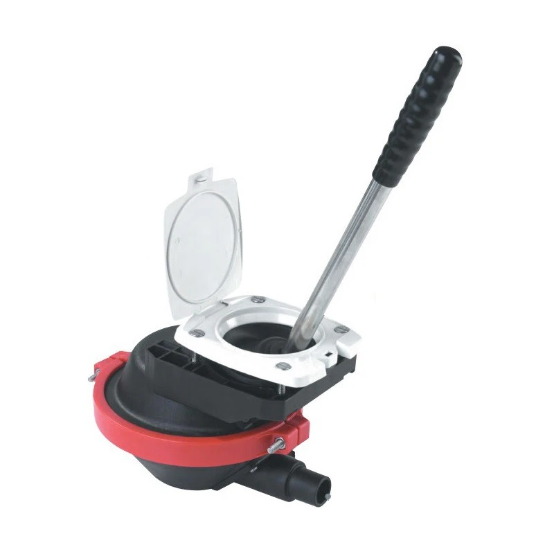 Pompe de cale manuelle à encastrer sur paroi du cockpit, la WHALE Compac 50 se fixe rapidement par 4 vis : équipement de sécurité en bateau indispensable.
